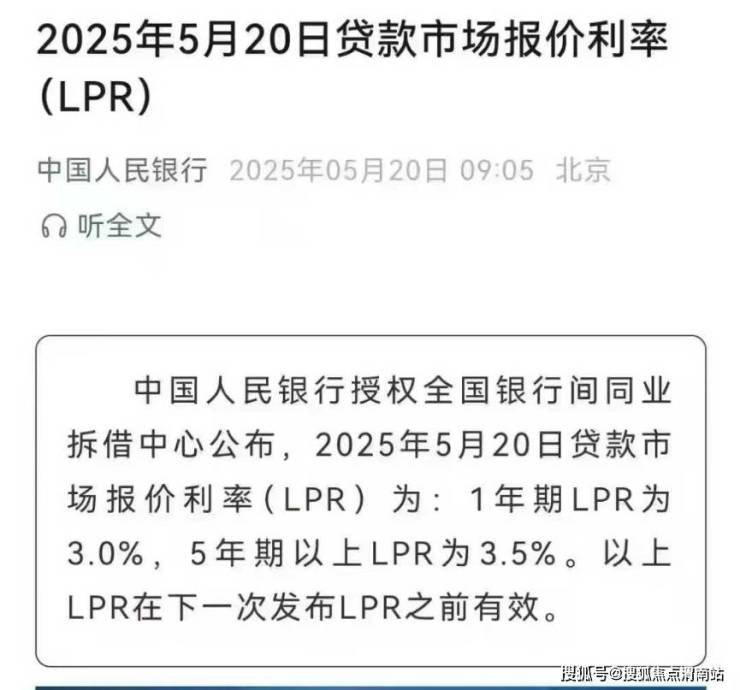 LPR官宣下调!渭南目前房贷利率是多少?中国人民银行授权全国银行间同业拆借中心公布,2025年5月20日贷款市场报价利率(LPR)为:1年期LPR为3.0%,5年期以上LPR为3.5%。以上LPR在下一次发布LPR之前有效。 均较上一期下降10个基点。