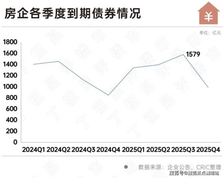 从债务到期来看,由于近年来不少房企选择将债务展期或置换,2025年债务到期规模甚至要高于2024年,达5301亿元,其中2025年第三季度是偿债高峰,到期规模约1579亿元。