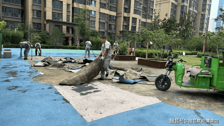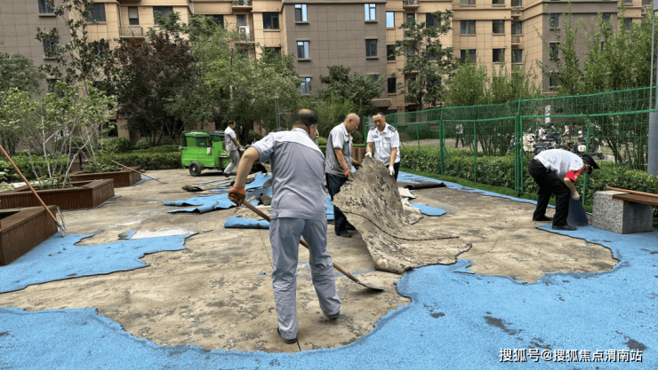 新洲物业的工作人员在日常巡检中敏锐地察觉到了这一问题。秉持着对业主高度负责的态度,尤其是对孩子们安全的深切关怀,新洲物业迅速行动起来,将游乐运动区塑胶地面的更换提上了日程。
