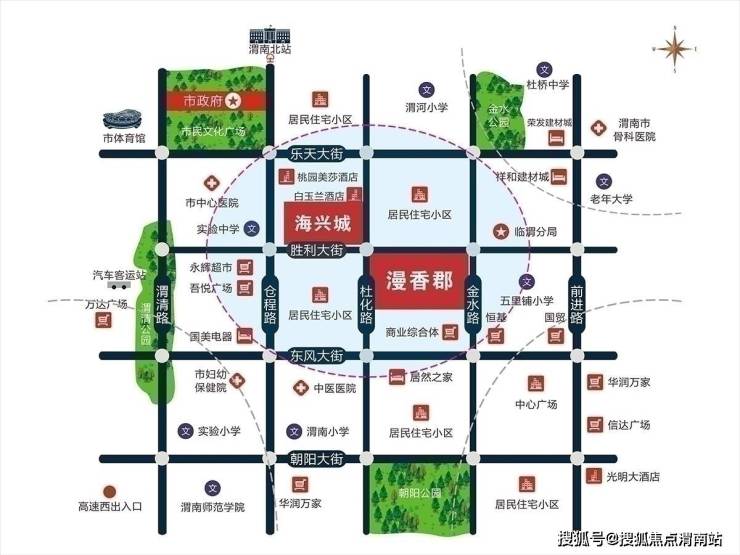 交通配置:渭南北站、新客运中心交通门户,有1、2、6、8、11、12、13、16、216路公交车