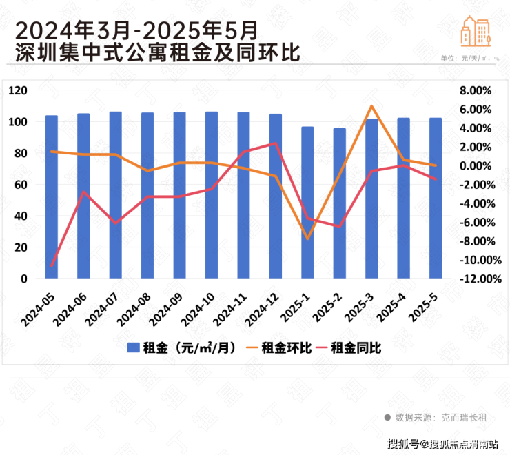克而瑞长租数据显示,广州是唯一租金微涨的城市,较2024年上涨2.08%;北京、上海和深圳集中式长租公寓租金出现1-5%的降幅,尤为典型的是上海,今年5月租金坪效较2024年下跌超5%。