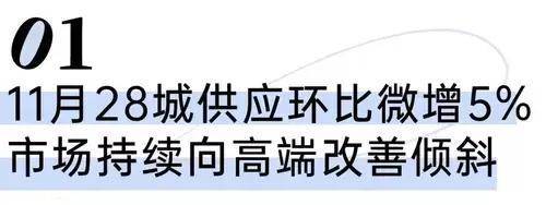 11月新房供应持稳,28城单月供应环比微增5%,同比下降46%,其中高端产品供应比重较上月有所增加。