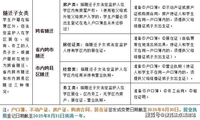 学生户籍在临渭区外,但父母一方或法定监护人在学区居住、经商、务工的人员子女。根据户籍所在地分为跨省随迁、省内跨市随迁和市内跨县区随迁三种情况,每种情况中均包含房产类、居住证类、经营类、务工类。