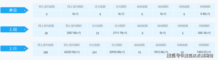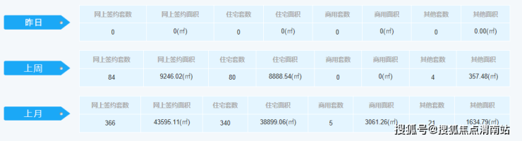 环比上周,网上签约套数上涨3套,其中签约面积上涨112.95㎡;住宅增长2套,其中面积下降51.25㎡;商用套数不变,商用面积不变;其他套数上涨1套,其他面积上涨164.2㎡。