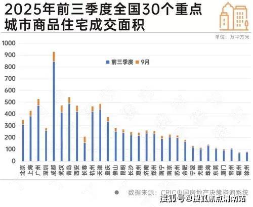 2025年至今,整体楼市依然处于“止跌回稳”的过程中,三季度成交高位回落、筑底企稳,9月恰逢传统营销旺季,因供应放量,新房成交迎来阶段性复苏行情:9月30个监测城市成交规模为926 万平方米,环比增长19%,同比下降5%,前三季度累计成交同比微降3%。