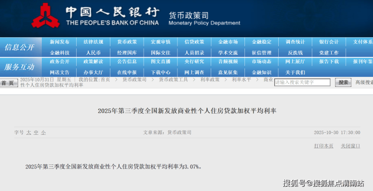 10月30日,据央行消息,2025年第三季度全国新发放商业性个人住房贷款加权平均利率为3.07%。