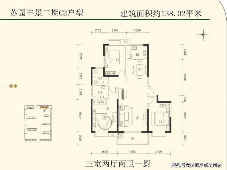 苏园丰景项目分两期开发,一期共5栋楼,分别为1#、2#、3#、4#、5#楼,已成功交房入住。苏园丰景二期4栋住宅楼,2栋商业楼,1座幼儿园。住宅楼分别为6#、7#、8#、9#楼。 6#、7#、8#楼为26层。苏园丰景二期户型面积为两室95.33平米、109.10平米、109.58平米;三室126.48平米、128.3平米、133.42平米、134.80平米、136.09平米、137.66平米、138.08平米;四室212.49平米和212.86平米。 9#楼总高18层,纯板式结构,三个单元,两梯两户,户型面积为三室136.09平米。