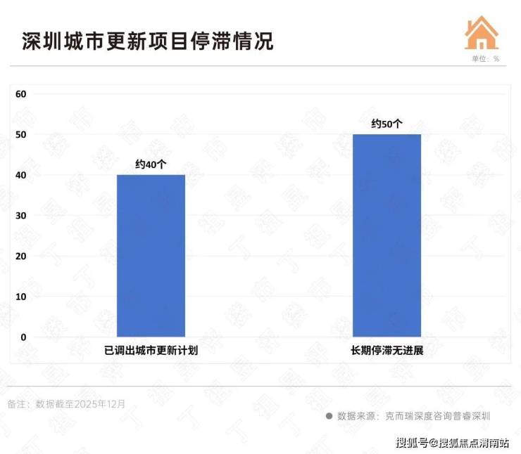 根据普睿深圳数据,截至2025年12月,深圳有约50个城市更新项目长期停滞无实质性进展,另有近40个项目被调出城市更新计划。近90个项目停滞或调出计划的根源在于经济账算不过来。