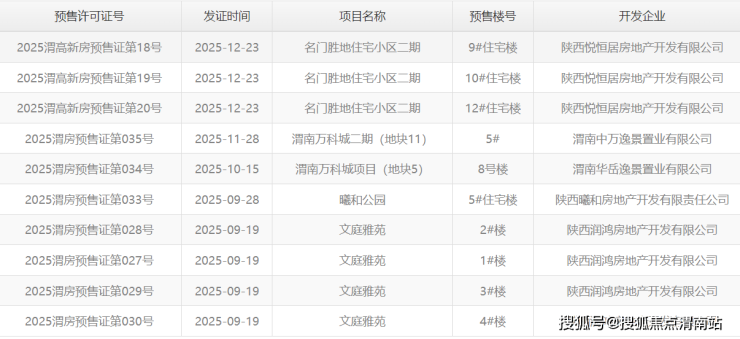 五、渭南楼市上周(2025年12月22日-12月28日)预售证公示信息