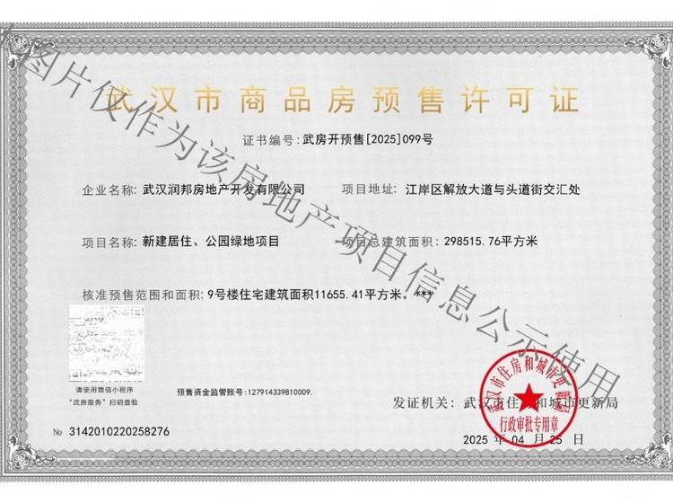 - 武房开预售[2025]099号 详情发证时间 2025-04-25绑定楼栋9#证件照片