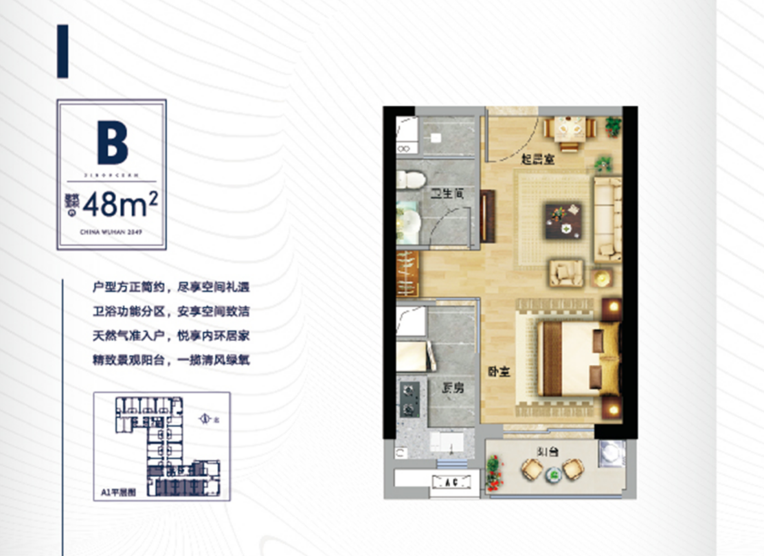 1室1厅1卫-48平户型