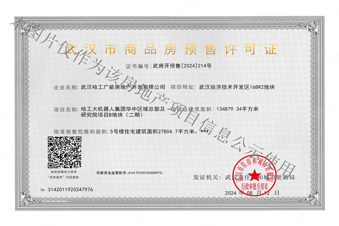 - 武房开预售[2024]214号 详情发证时间 2024-08-12绑定楼栋5#证件照片