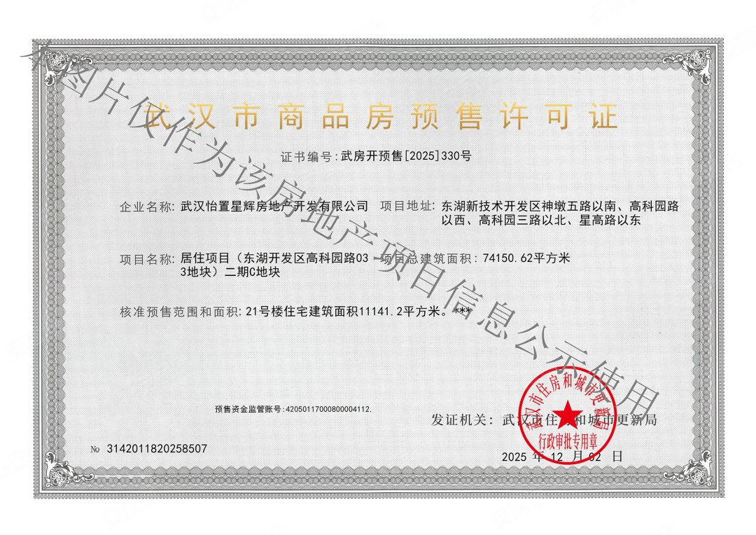 - 武房开预售[2025]330号 详情发证时间 2025-12-02绑定楼栋21#证件照片