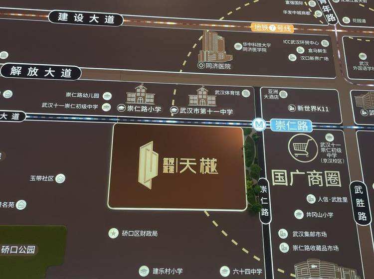 项目由中国房地产百强、武汉龙头国企武汉城建集团开发,是武汉城建集团2023年中心焕新代表作品。项目地处京汉大道与崇仁路交汇处,坐拥“四横三纵一轨”快速路网,步行至地铁1号线崇仁路站A出口仅约80m,约10分钟即达国广商圈,近享K11、武商MALL、恒隆广场等城市TOP级商业配套资源。约1.5公里范围内可享同济医院、协和医院等顶级医疗配套、周边优质教育资源丰富,崇仁路小学、武汉十一崇仁初级中学、武汉市十一中学等名校环绕,打造家门口12年一站式目送优质教育圈。项目整体配备铂钻天幕立面,高定五重归家动线,通过围合式布局将四大主题轴线和两大居住组团串联,为终改人居划定居住新高度。