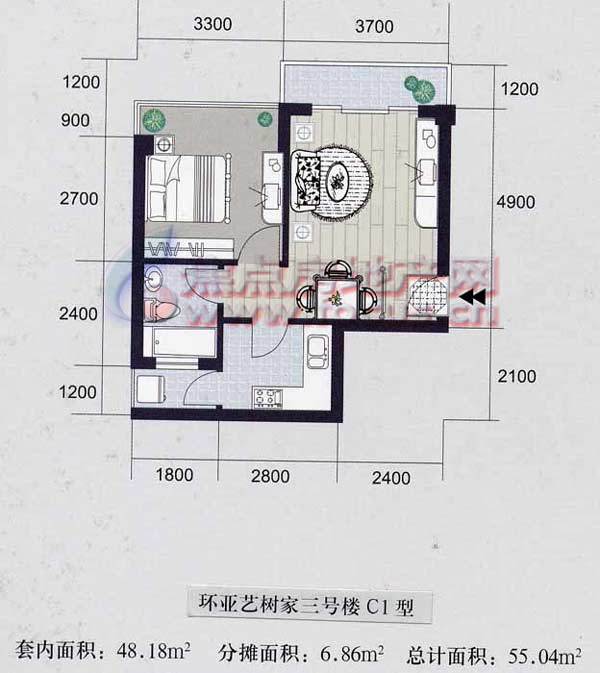 1室1厅1卫-艺树家 1室-1厅-1卫-1厨---55.04平方米