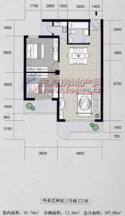 2室2厅1卫-艺树家 2室-2厅-1卫-1厨---107.08平方米