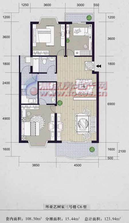 3室2厅2卫-艺树家 3室-2厅-2卫-1厨---123.94平方米