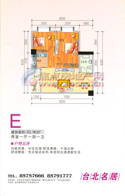 2室1厅1卫-台北名居 E户型两房一厅一卫83.96平方米