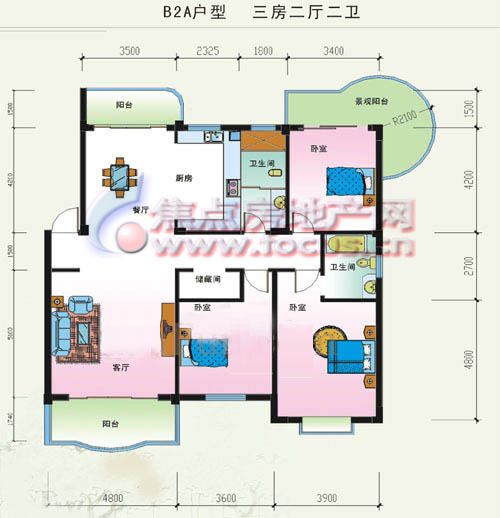 3室2厅2卫-天上人间 3室 2厅 2卫 1厨 130.28平方米