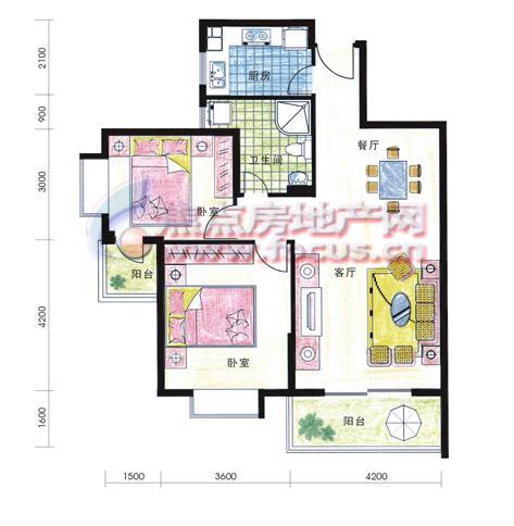 2室2厅1卫-云鹤星苑A-4 两室两厅一卫 95.59-95.71平米