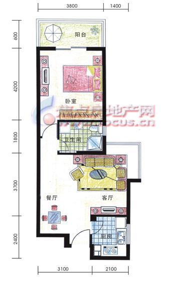1室1厅1卫-云鹤星苑C-2 一室一厅一卫 65.69-65.92平米