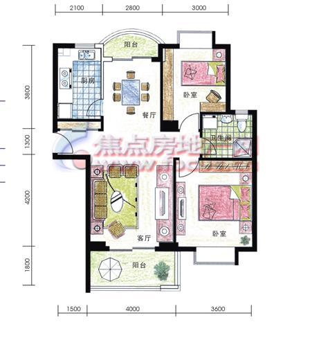 2室2厅1卫-云鹤星苑A-3 两室两厅一卫94.35平米