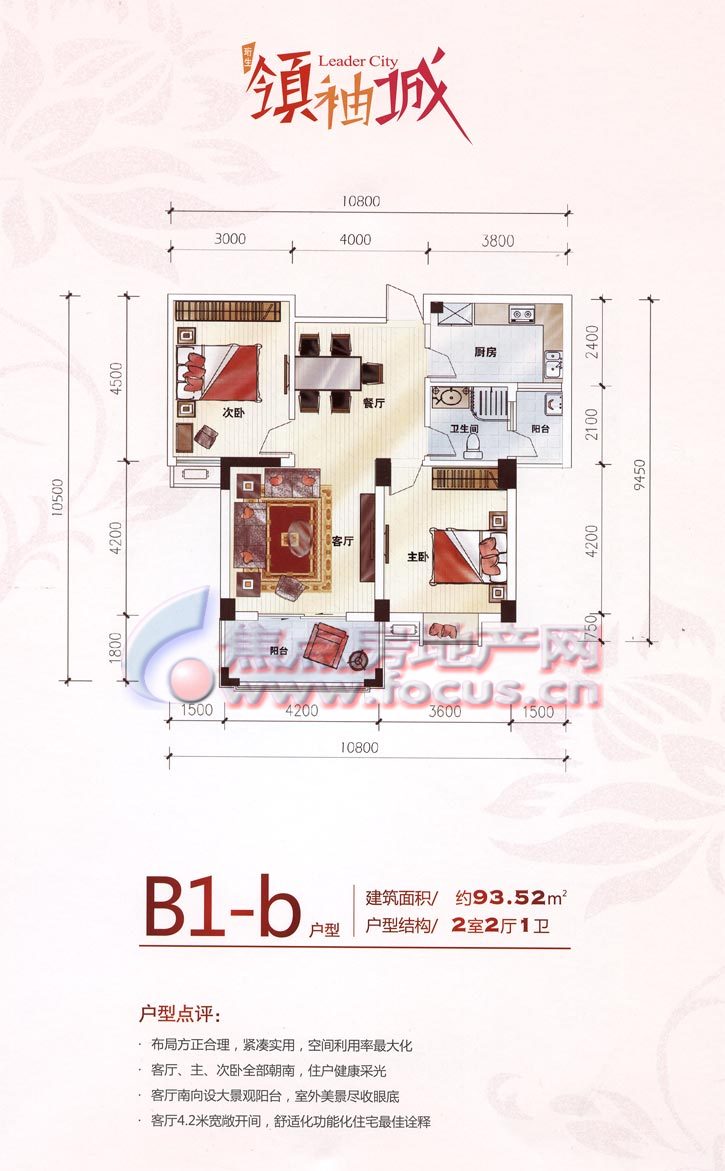 2室2厅1卫-珩生领袖城B1-b两室两厅一卫约93.52平米