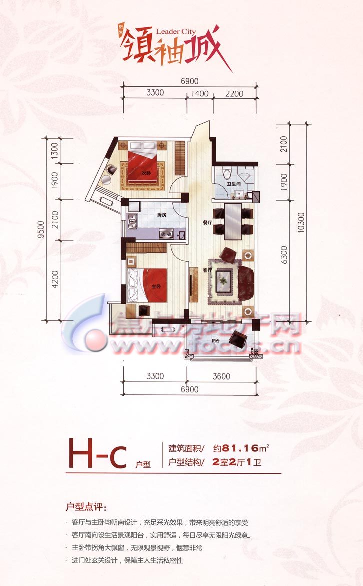 2室2厅1卫-珩生领袖城H-c两室两厅一卫约81.16平米