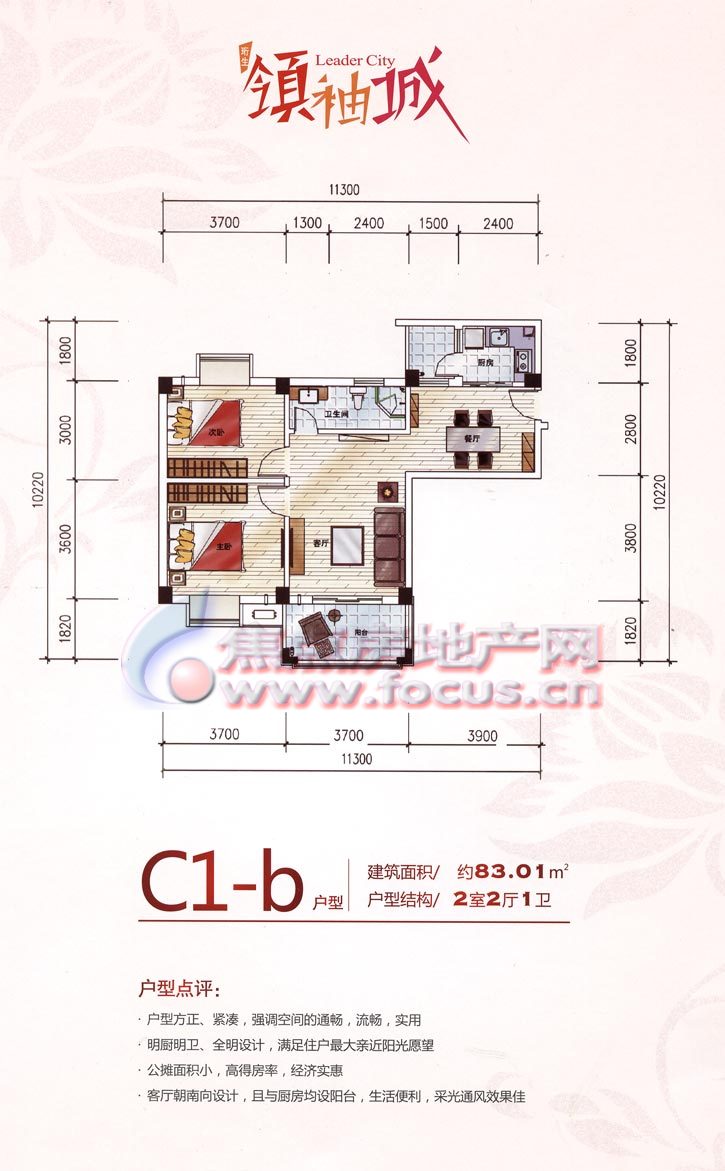 2室2厅1卫-珩生领袖城C1-b两室两厅一卫约83.01平米