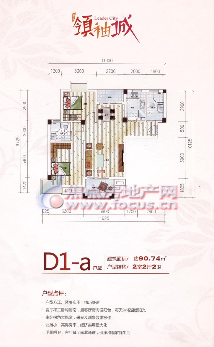 2室2厅2卫-珩生领袖城D1-a两室两厅两卫约90.74平米