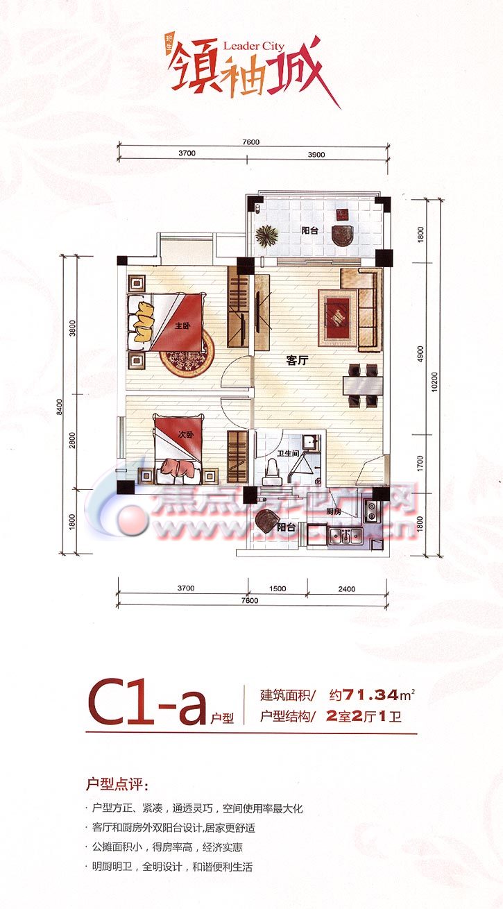 2室2厅1卫-珩生领袖城C1-a两室两厅一卫约71.34平米
