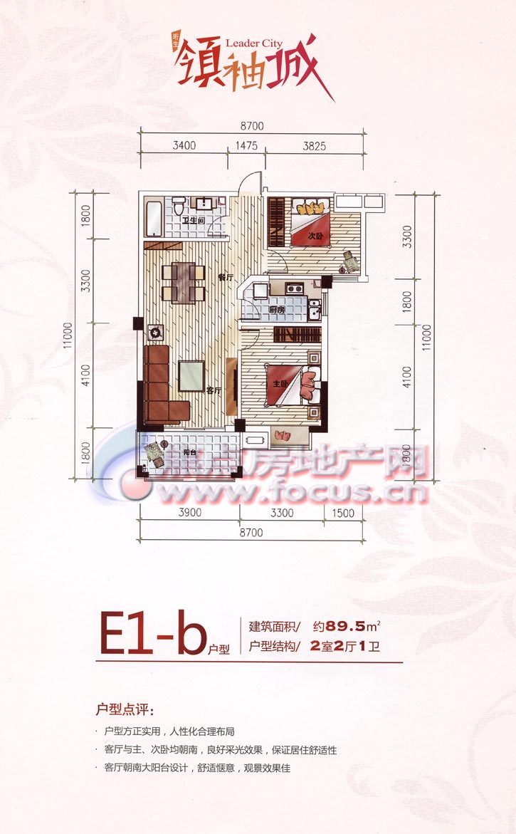 2室2厅1卫-珩生领袖城E1-b两室两厅一卫约89.5平米