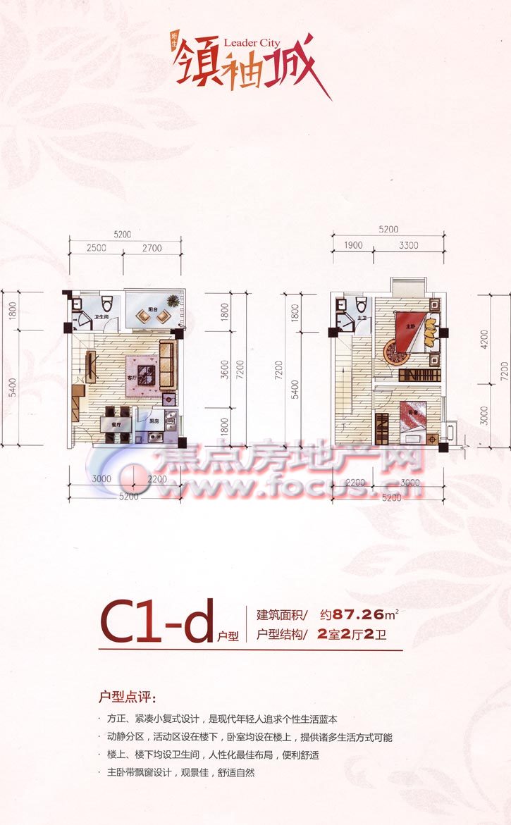 2室2厅2卫-珩生领袖城C1-d两室两厅两卫约87.26平米