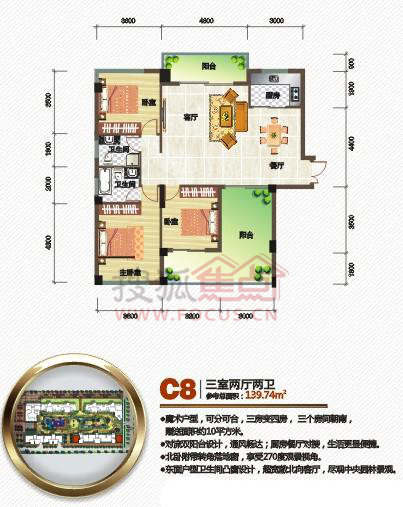 项目户型设计为82平方米的精致2房, 110到139平方米的阔绰3房, 156平方米的豪华4房,配以少量顶层带露台复式单元。项目建成后,将成蔡甸城关的地标建筑——城市名片,在创造“城市核心圈层生活”的价值理念下,打造蔡甸地标级的生活之都。