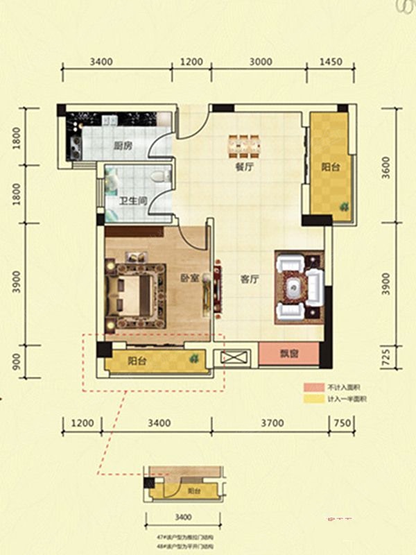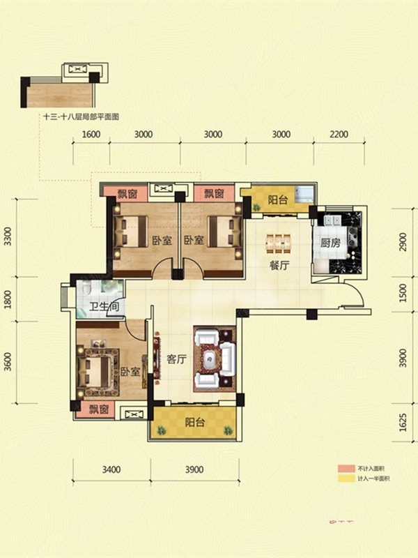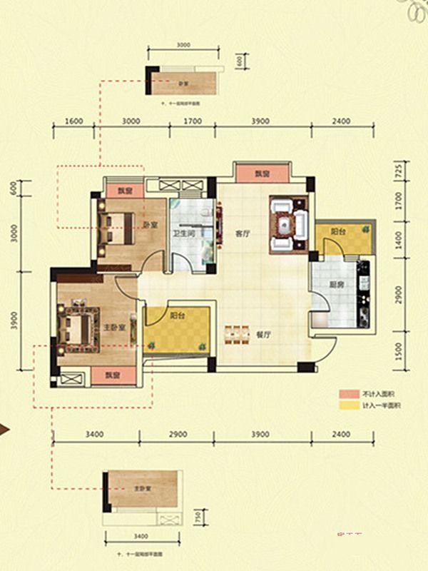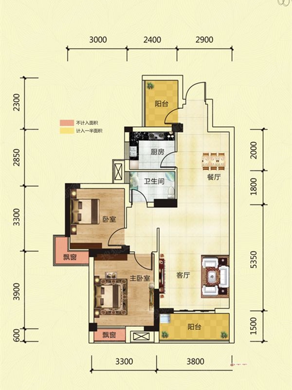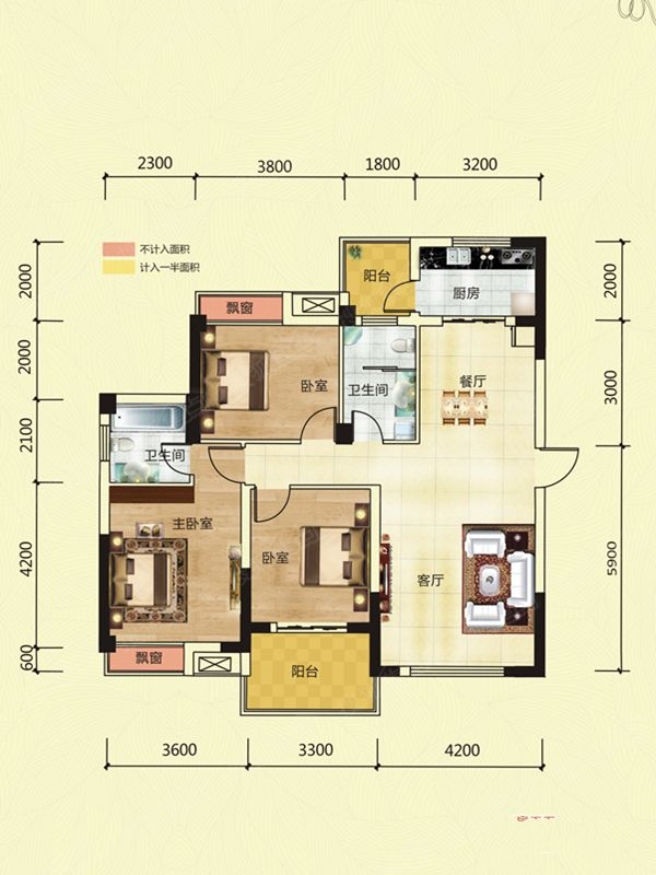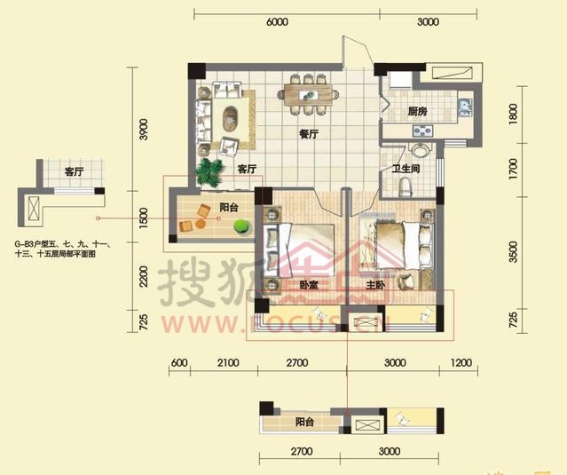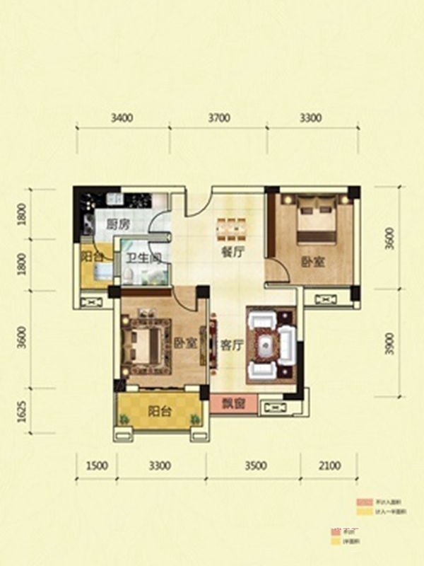 2室2厅1卫-水域天际缇香郡一期G-B1户型