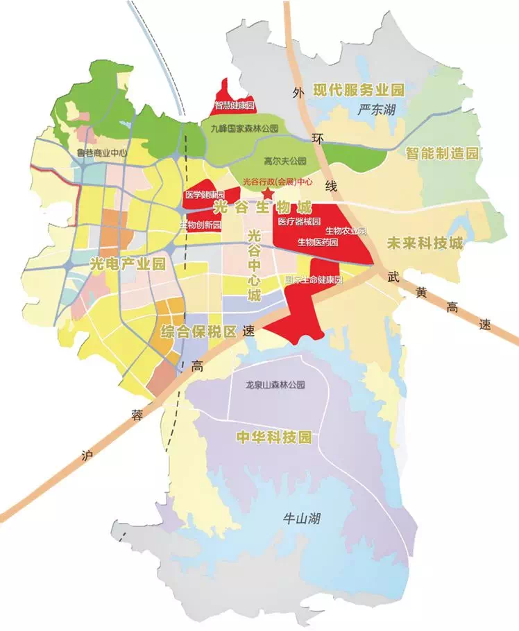 光谷生物城位于武汉东湖新技术开发区,规划面积为30平方公里,设有7个专业园区,是全市大健康产业发展的驱动核。