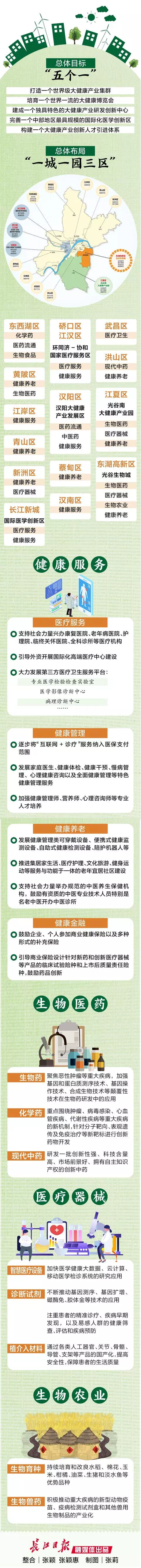 此次大健康规划中,武汉将构建生物医药、医疗器械、医药流通、生物农业和健康服务五大领域协同发展的“一城一园三区”新格局。