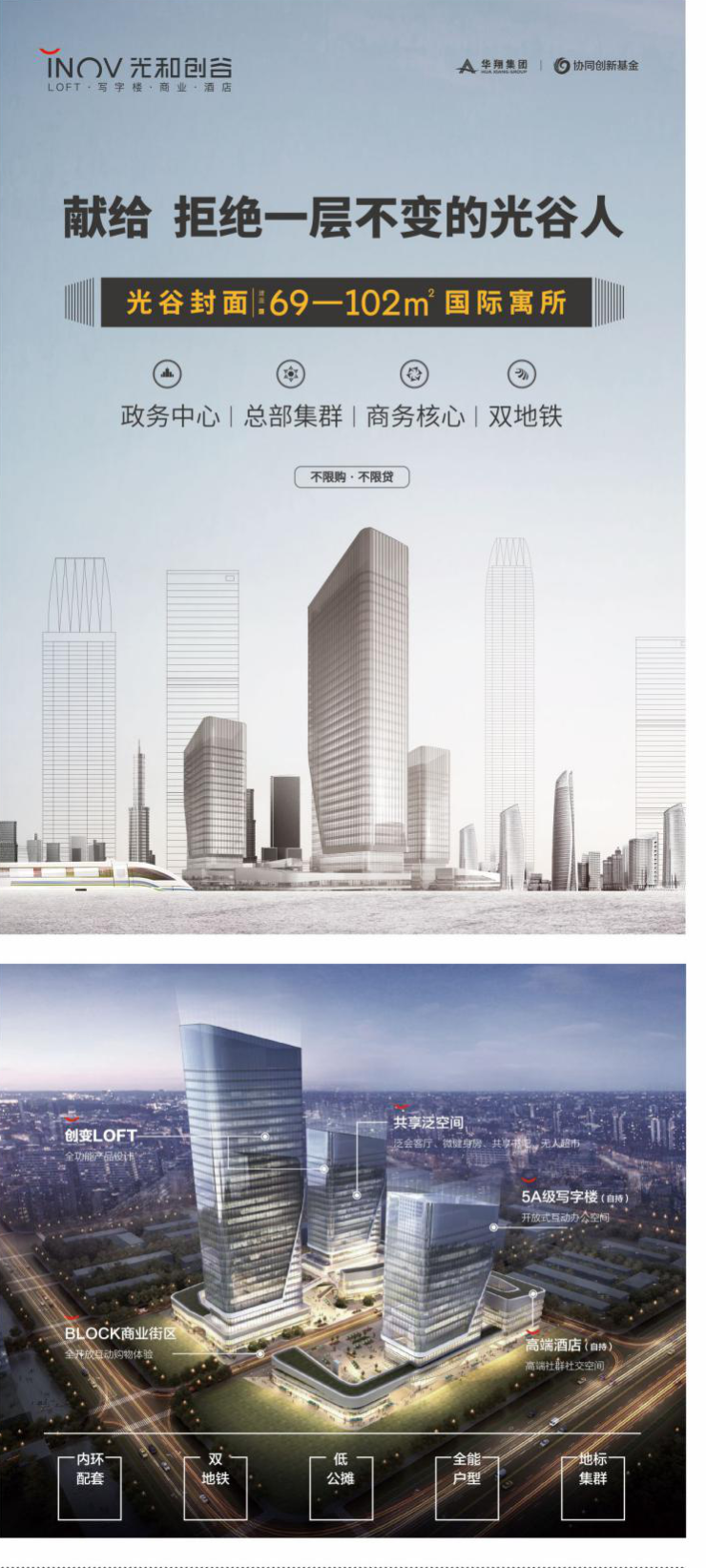 秉承“信守于胸、惠至于人”的企业理念,基于对城市未来发展方向的判断,结合对光谷建设的理性思考,华翔集团于光谷中心城内环主轴核心区域打造光谷垂直化商住综合体范本——INOV光和创谷。