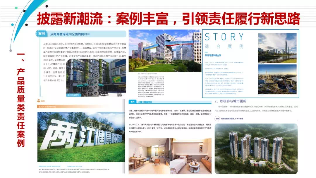 4、结合房地产行业特点,注意披露内容与公司发展理念和政策协调,发布相关公司治理成果、相关方生态链、企业品牌战略和责任使命引领、绿色发展技术和创新应用等;