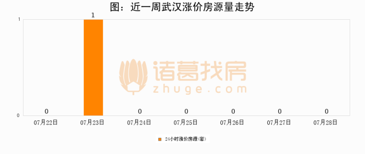 根据诸葛找房数据显示,武汉24小时涨价房源量为0套,较07月27日持平。