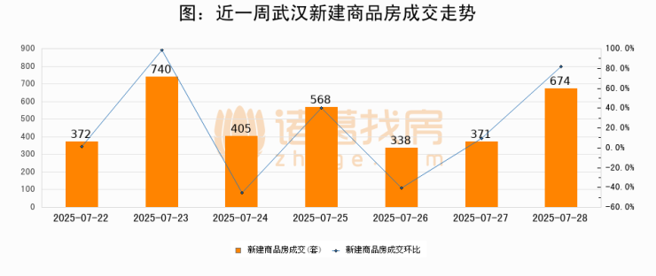 根据武汉市住房保障和房屋管理局数据显示,2025年07月28日武汉新建商品房成交674套,较昨日增加303套,环比上涨81.7%。近一周武汉新建商品房日均成交496套。07月28日单日成交674套,高于近一周平均水平35.9%。
