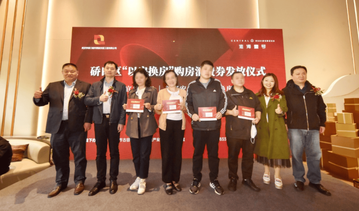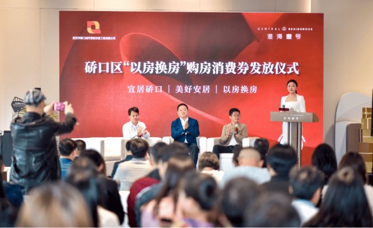 4月12日上午,武汉市硚口区商品房“以房换房”购房消费券发放仪式在凯德·淮海壹号营销中心成功举办。活动现场,硚口城市更新安居工程公司向部分“以房换房”报名成功的业主发放购房消费券,该消费券金额为业主旧房的评估价值,业主在购买硚口区指定新建商品房时可用以抵扣购房款,标志着“以房换房”这一政策在武汉市硚口区率先落地。