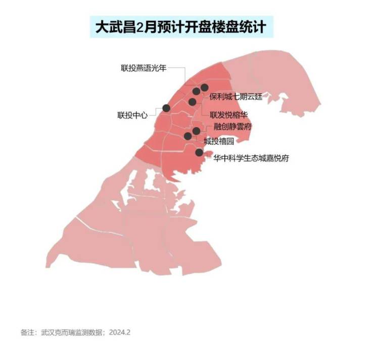 2月预开盘统计中,大武昌片区有5个纯新盘待入市,例如武珞路板块的融创静雲府、城投禧园,南湖板块的华中科学生态城嘉悦府,徐东板块的联发悦榕华,杨春湖板块的联投燕语光年,都将为市场带来新的产品供应。