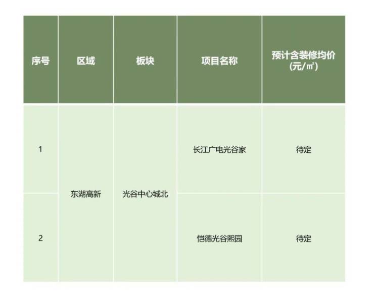 大光谷 2月预计供应2个项目,均为老盘加推,总供应约504套。