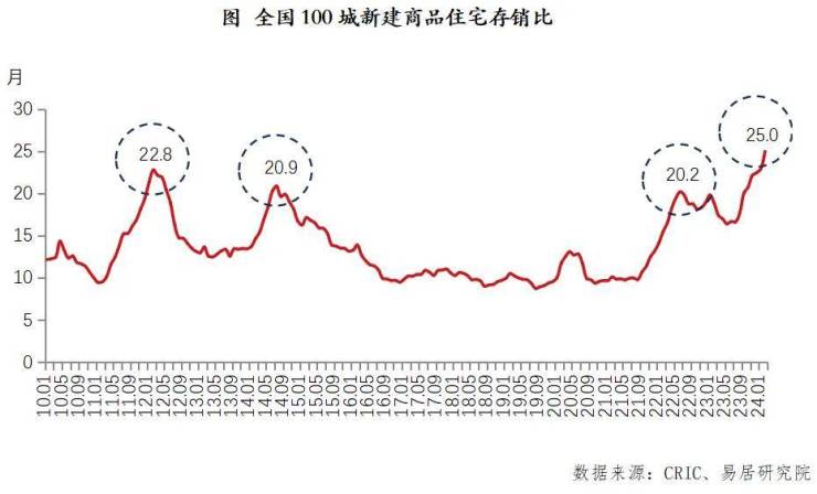 从去化周期方面来看,2月份全国百城库存存销比为25个月,属于2010年有数据监测以来的最高值,也是历史上首次突破两年的现象。报告指出,2月份数据有一定的季节波动因素,但去库存工作需要有新打法和新策略。