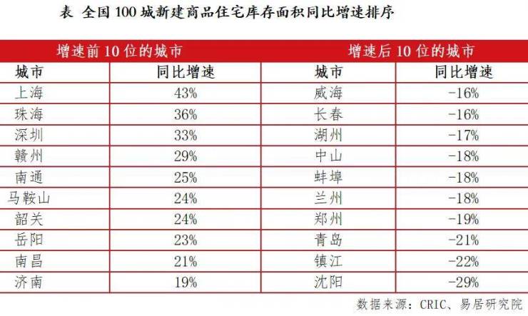 另外,从城市排序来看,一些重点大城市其供货能力略强。例如上海、珠海、深圳等此类城市基本面不错,其库存规模同比增速较大。