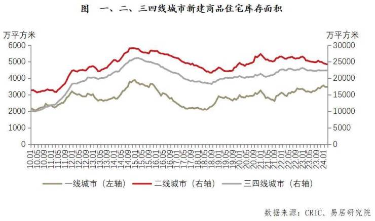 易居研究院近日发布的报告显示,2024年2月全国百城新建商品住宅库存规模为49989万平方米,环比增长-0.5%,同比增长-2.3%。