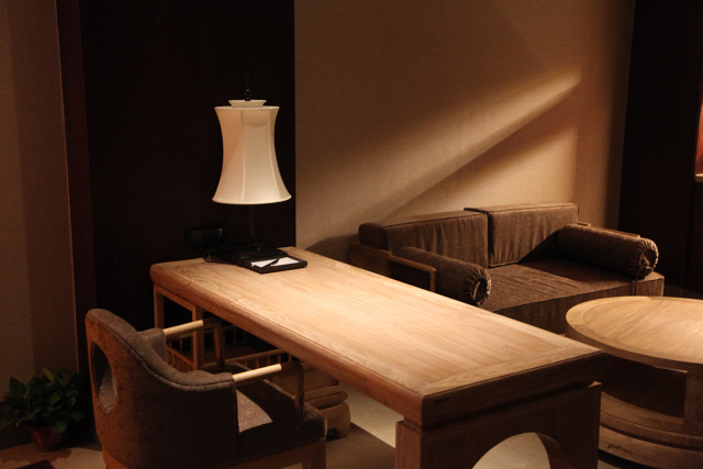 办理入住在明华殿,古朴精致的前台与大堂、温声细语的入门问安,一下子就拉近了宾主的距离。大堂的屏风后是一个汉白玉桥的水池,向上直通楼顶,水声潺潺。水池中布置着华丽的亭台,坐在其间品茶看书,如同身处江南的园林一般惬意悠然。