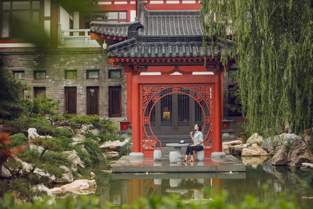 宫殿多的好处就是,当你游走的时候,经常会遇到出其不意的隐逸之处。在迎阳苑遇到茶香缭绕的海棠吧,坐在古色古香的半开放式包厢里享受依四时时令调配的养生茶;偶遇明华殿的唐吧唐茶,沉浸在书香中对饮......