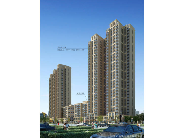 项目的外立面,采用的是英伦式的设计,1-2层采用的是干挂大理石石材,外观看起来也是十分高端大气上档次的,2层以上采用的是卡拉麦里金仿真石漆,它是可以起到一个防脱落掉色这样的一个功能,尤其是新疆冬天时间比较长,很多小区经过几个冬天,外立面显得很脏,而我们采用的这种材质优势就非常明显了,耐久性、抗风化、耐污耐脏效果非常好,同时起到防水透气及抗霉的作用,因此,现在市面上很多高端项目都会采用这种材质作为外立面。